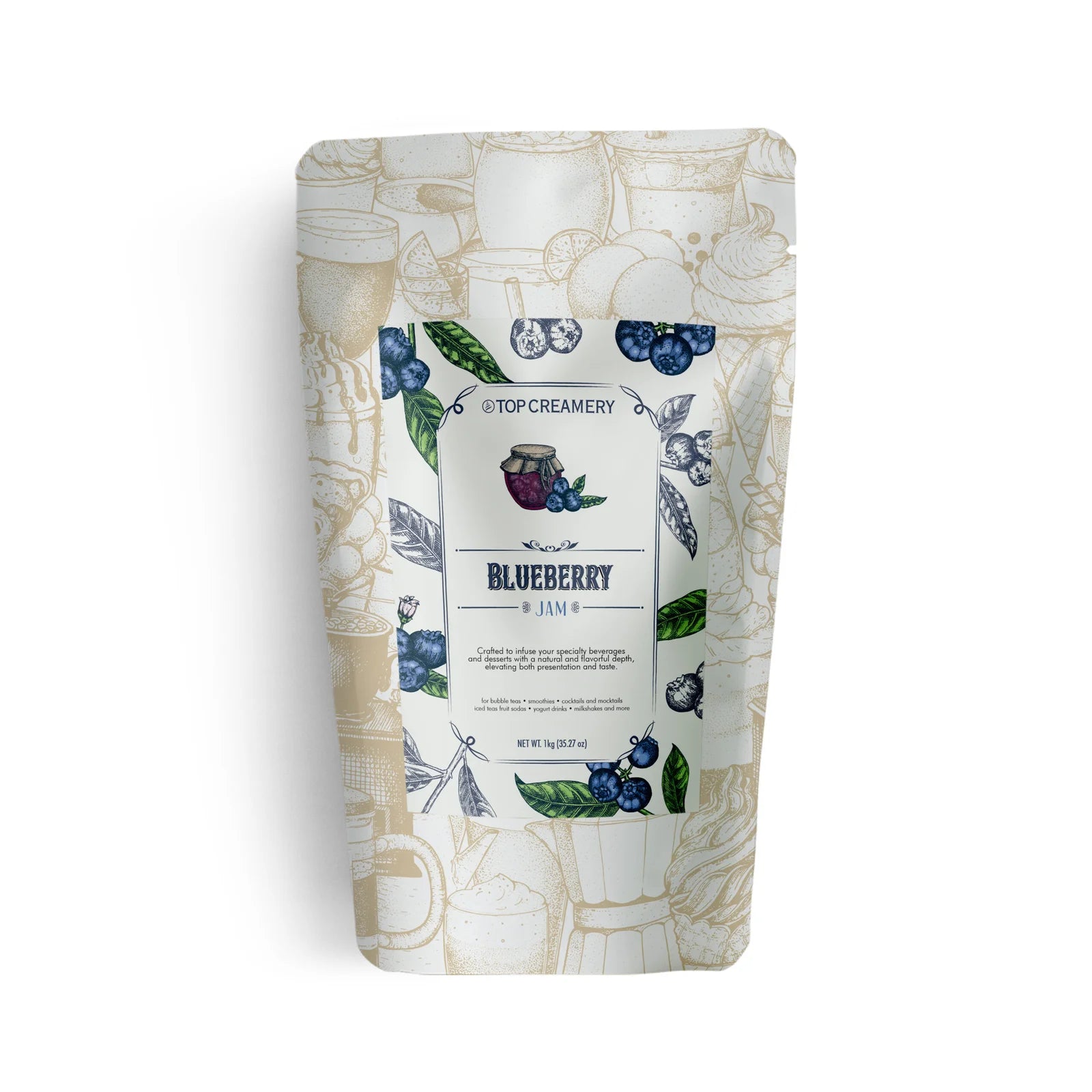 TOP Series Blueberry jam 1kg offers a rich, natural blueberry flavor with every scoop. Crafted from premium blueberries, this jam provides a burst of sweetness and tang that enhances both beverages and desserts. Whether used in bubble teas, smoothies, or as a topping for cakes and pastries, this jam infuses your products with an authentic, high-quality fruit flavor that delights customers.