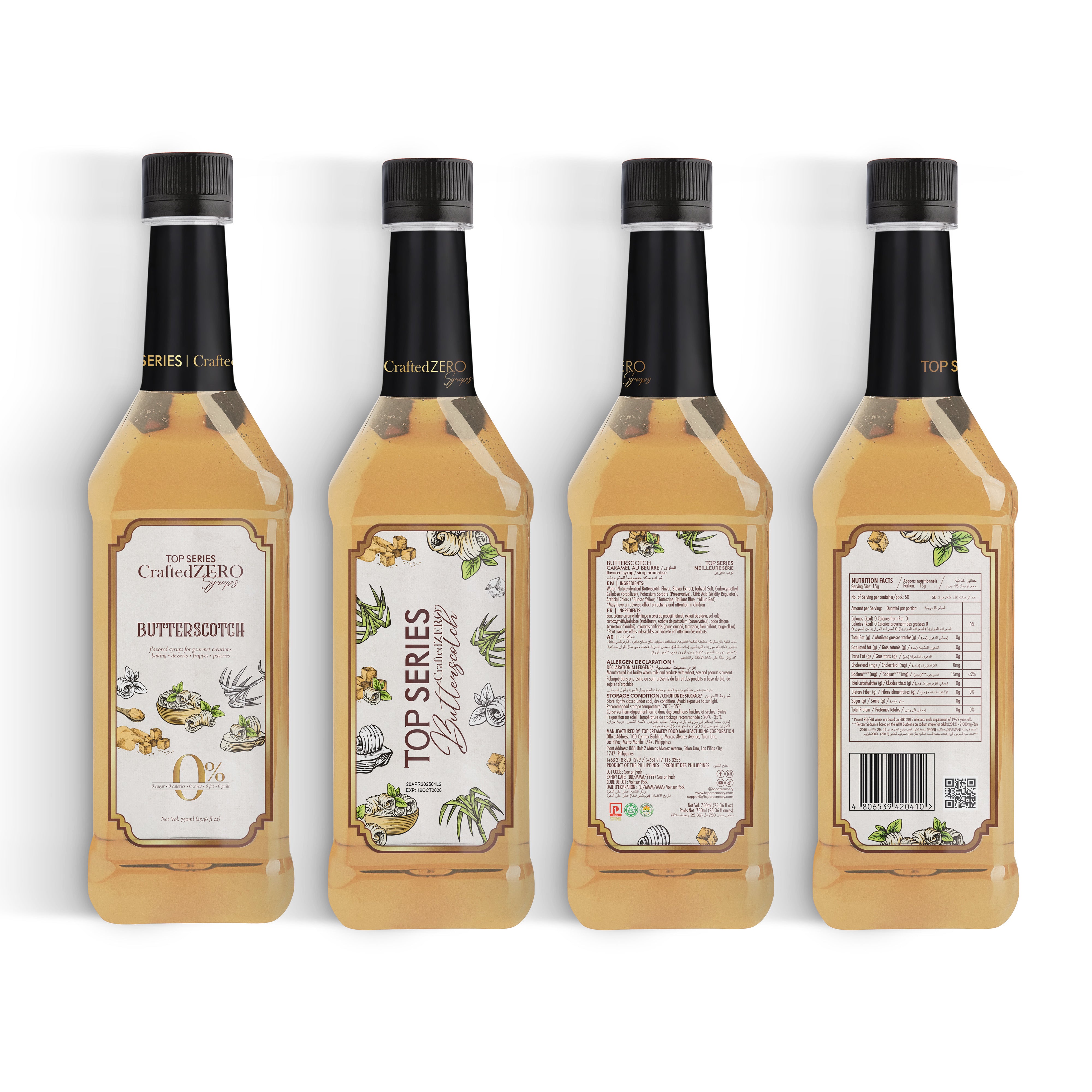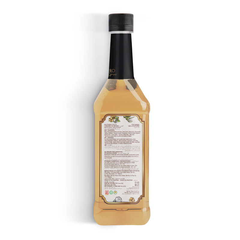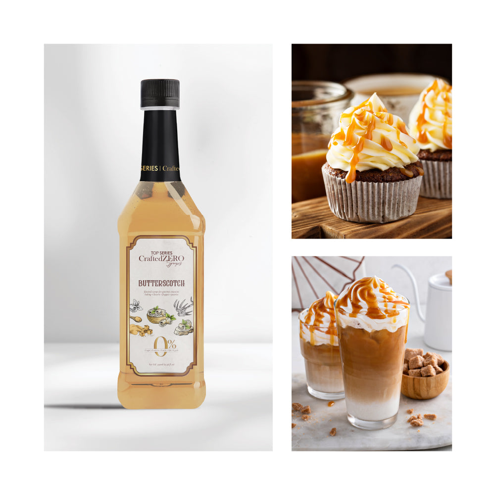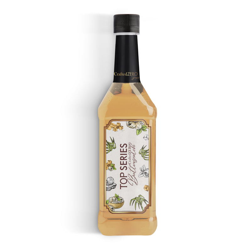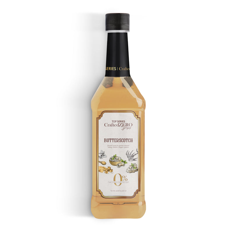 TOP Series CraftedZERO Butterscotch Syrup 750ml brings the nostalgic flavor of candy-shop butterscotch with a modern formula. This sugar-free butterscotch syrup for drinks offers indulgent depth—heavy-bodied, creamy, and sweet—crafted as a zero-calorie syrup for coffee and desserts without artificial aftertaste.