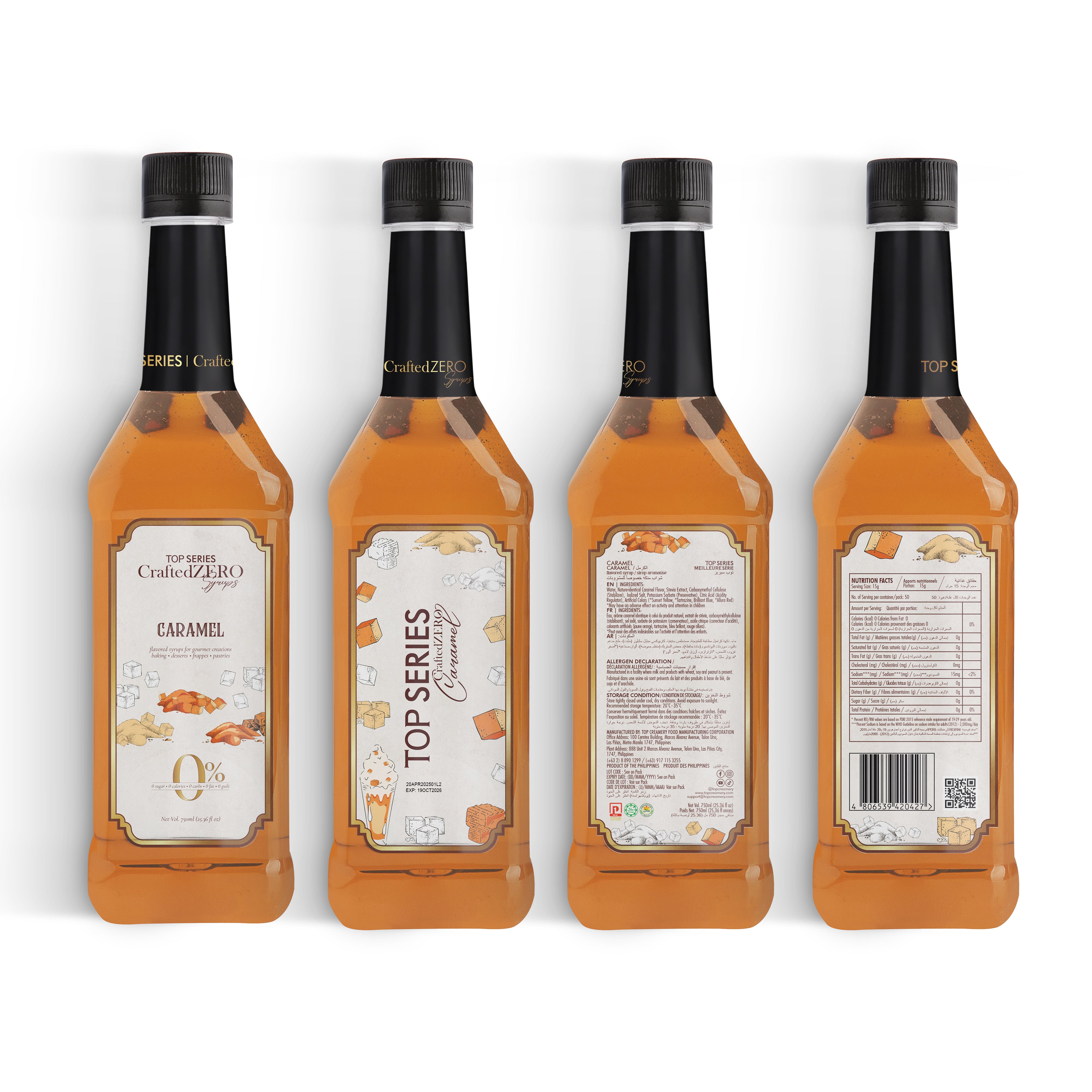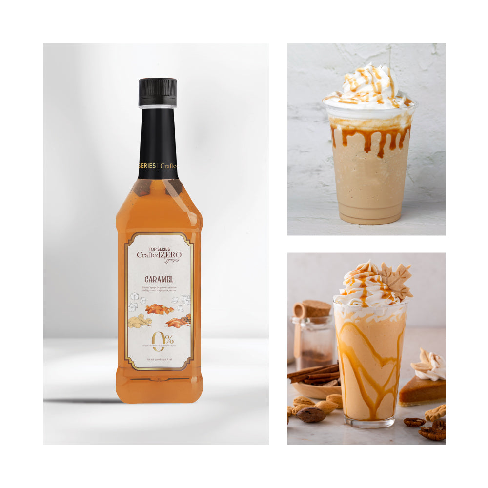 TOP Series CraftedZERO Caramel Syrup 750ml offers buttery sweetness with deep notes of vanilla and toasted sugar. This sugar-free caramel syrup, made with stevia extract, delivers the richness of milk fudge without the calories—ideal for guilt-free indulgence in both drinks and desserts.
