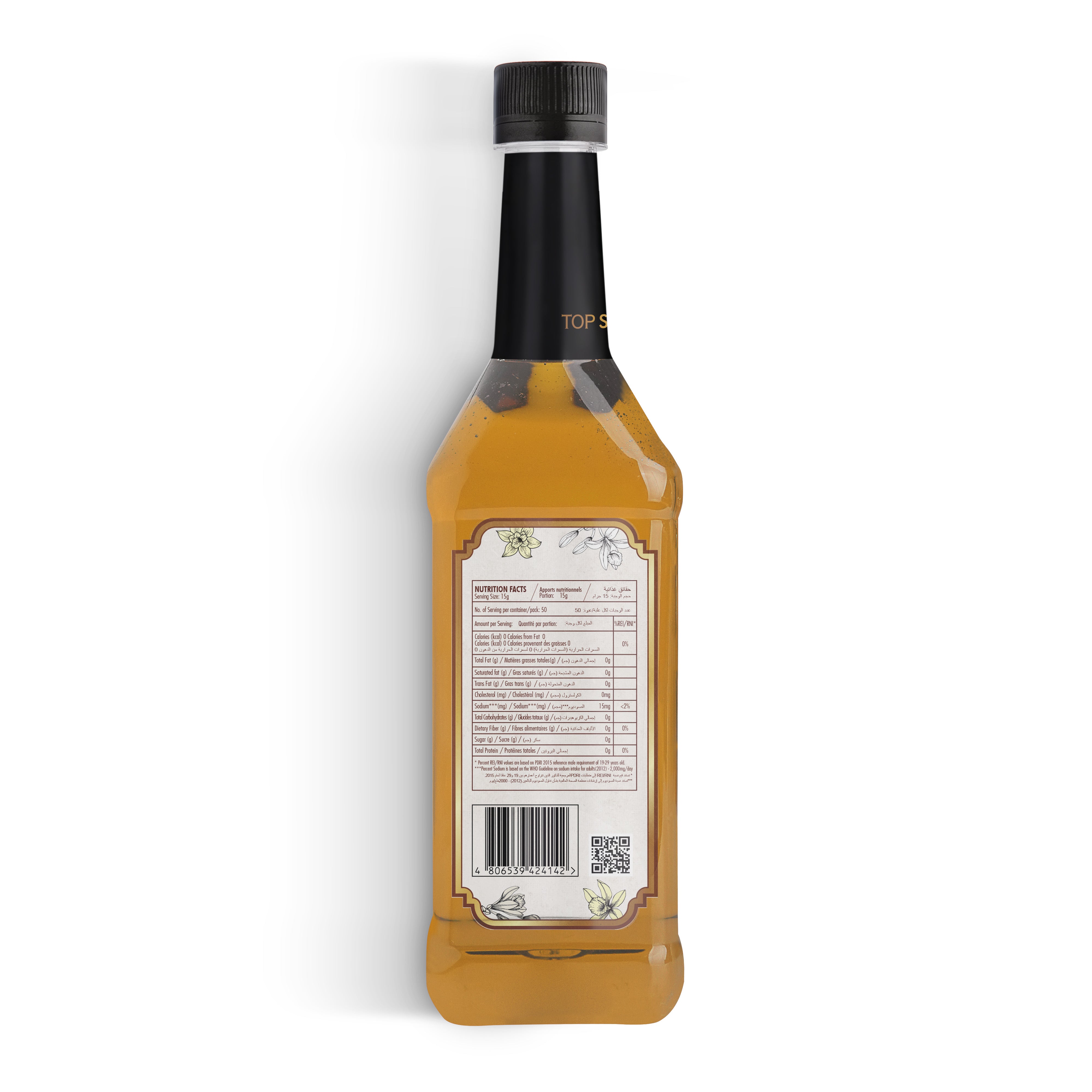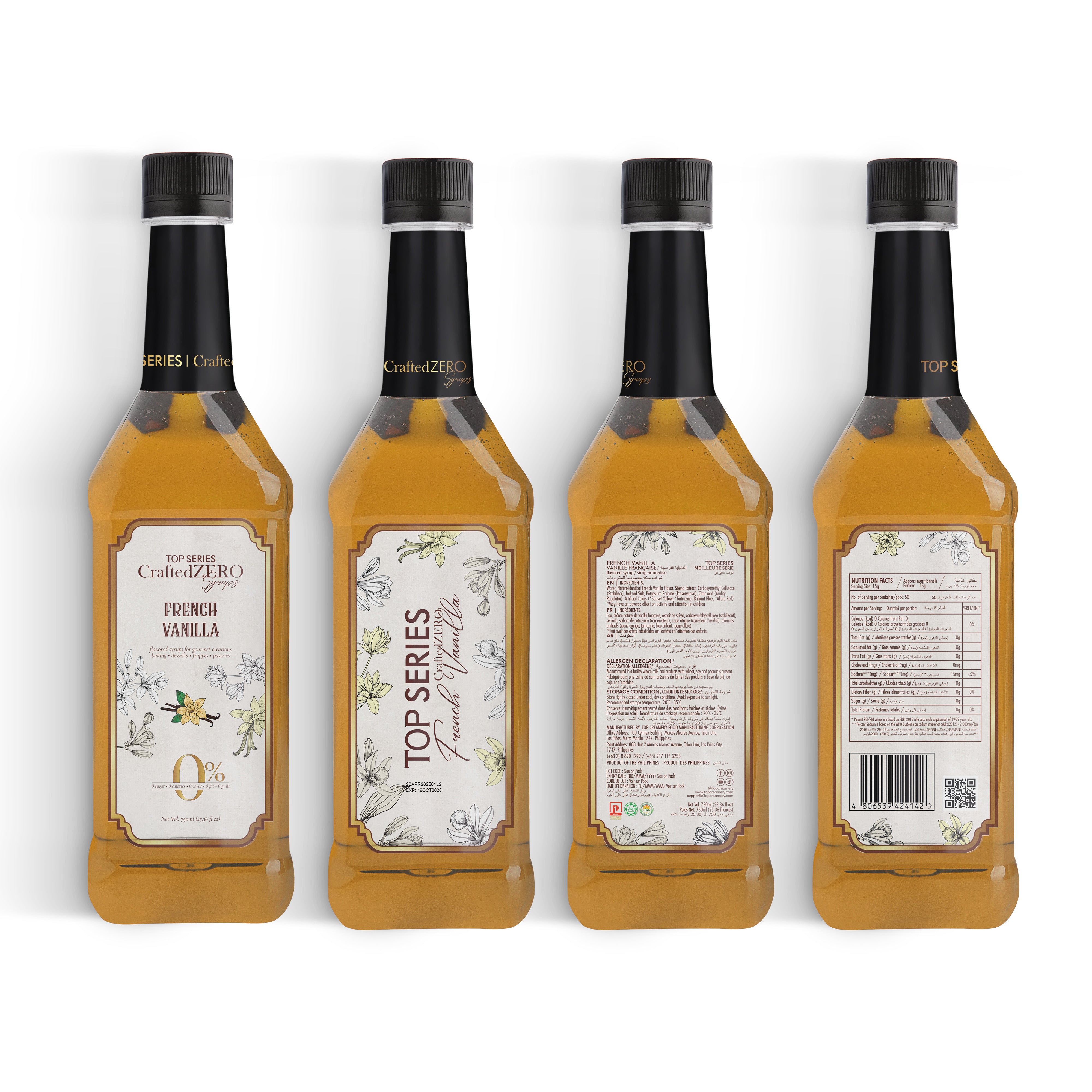 TOP Series CraftedZERO French Vanilla Syrup 750ml delivers deep vanilla bean aroma with creamy softness—without the sugar, calories, or carbs. This sugar-free vanilla syrup for coffee is formulated with stevia for those seeking flavor indulgence and a clean finish. A versatile zero-calorie syrup for drinks, it blends seamlessly across hot or cold applications.