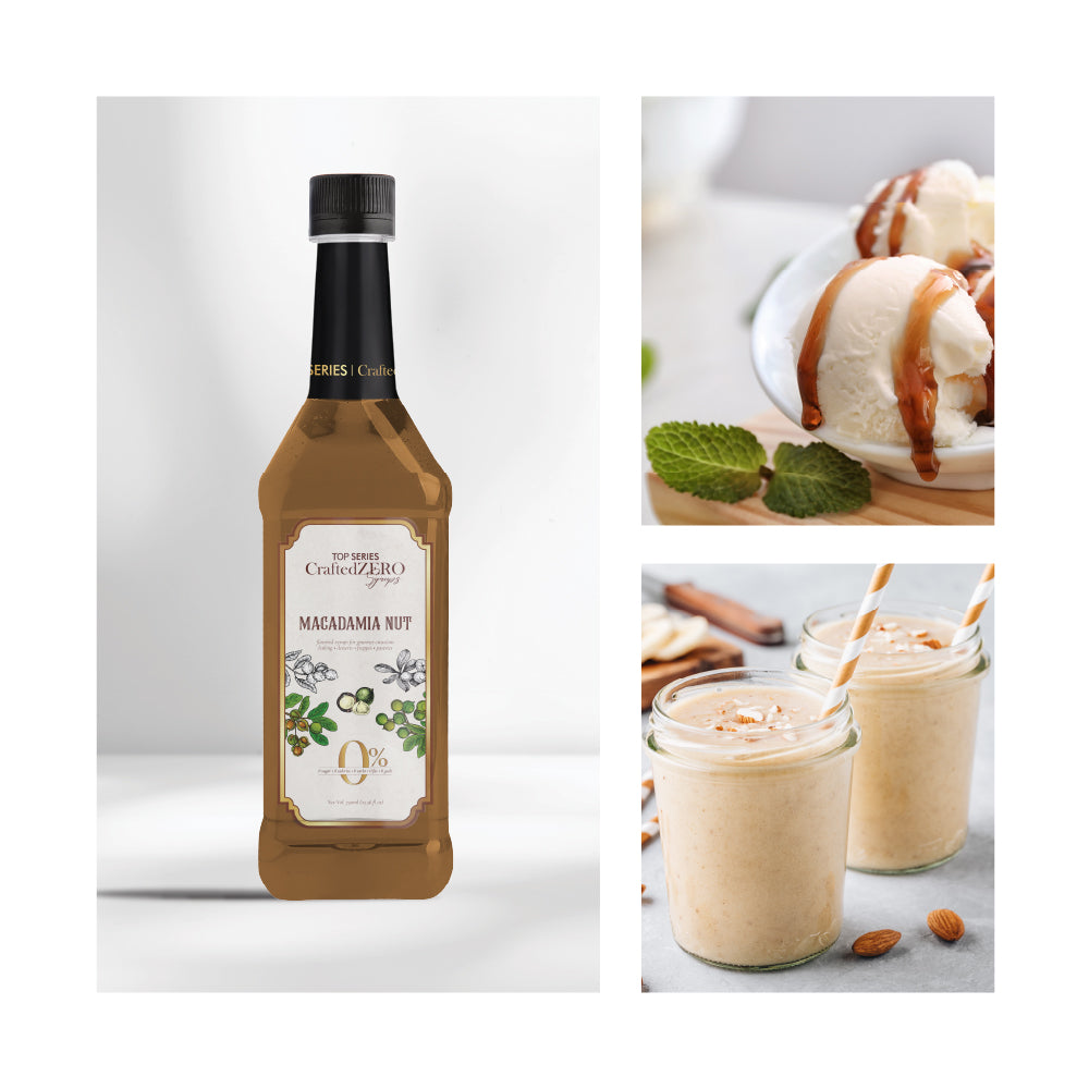 TOP Series CraftedZERO Macadamia Syrup 750ml offers a rich, nut-forward indulgence, combining the distinct profile of roasted macadamia in a guilt-free formula. This sugar-free macadamia syrup for drinks is crafted as a zero-calorie syrup for coffee and desserts, delivering full-bodied flavor with no sugar and no aftertaste.