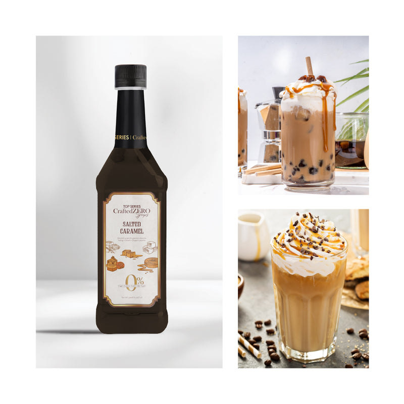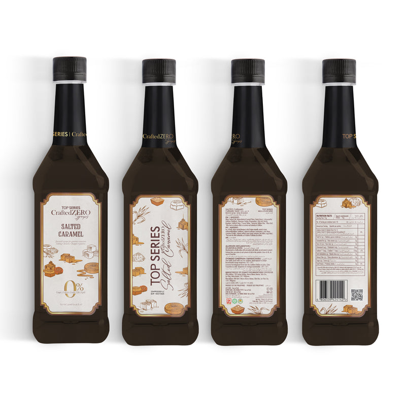 TOP Series CraftedZERO Salted Caramel Syrup 750ml offers a rich fusion of golden caramel, buttered toffee, and a precise touch of sea salt. This sugar-free salted caramel syrup for drinks delivers indulgence without sugar, calories, or compromise—crafted as a balanced zero-calorie syrup for cocktails and specialty beverages.