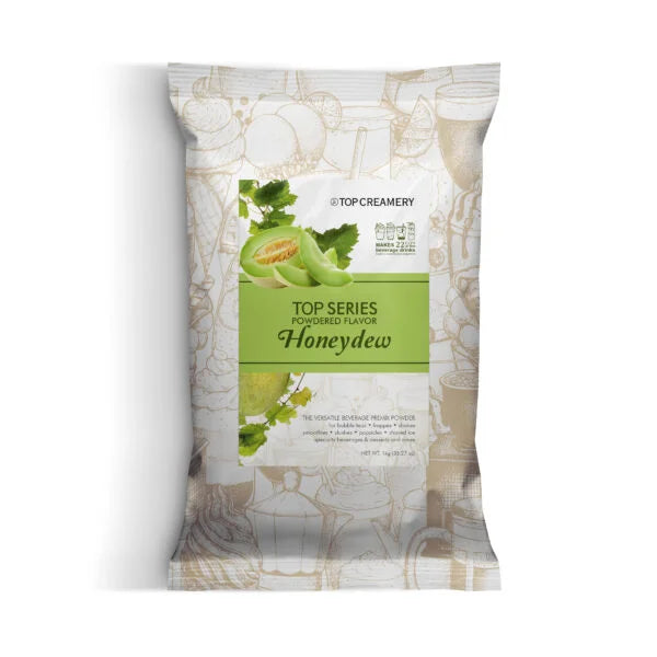 TOP Series Honeydew Powder delivers the delicate sweetness of honeydew melon, providing a versatile ingredient for bubble teas, frappes, and desserts.