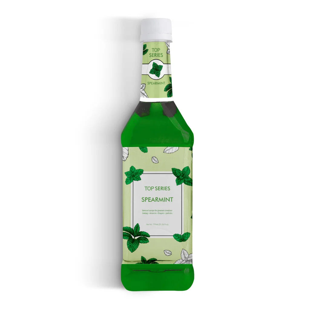 TOP Series Spearmint Syrup brings a crisp, refreshing mint flavor with a subtle sweetness, perfect for a variety of beverages and desserts. Ideal for businesses looking to offer invigorating drinks like spearmint lattes, iced teas, and mocktails, this syrup also pairs beautifully with desserts like mint chocolate cakes, ice creams, and sorbets.