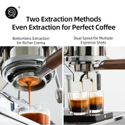 Two Extraction Modes in One – Easily switch between bottomless extraction for richer crema and double spout extraction for stable, multi-cup espresso brewing.