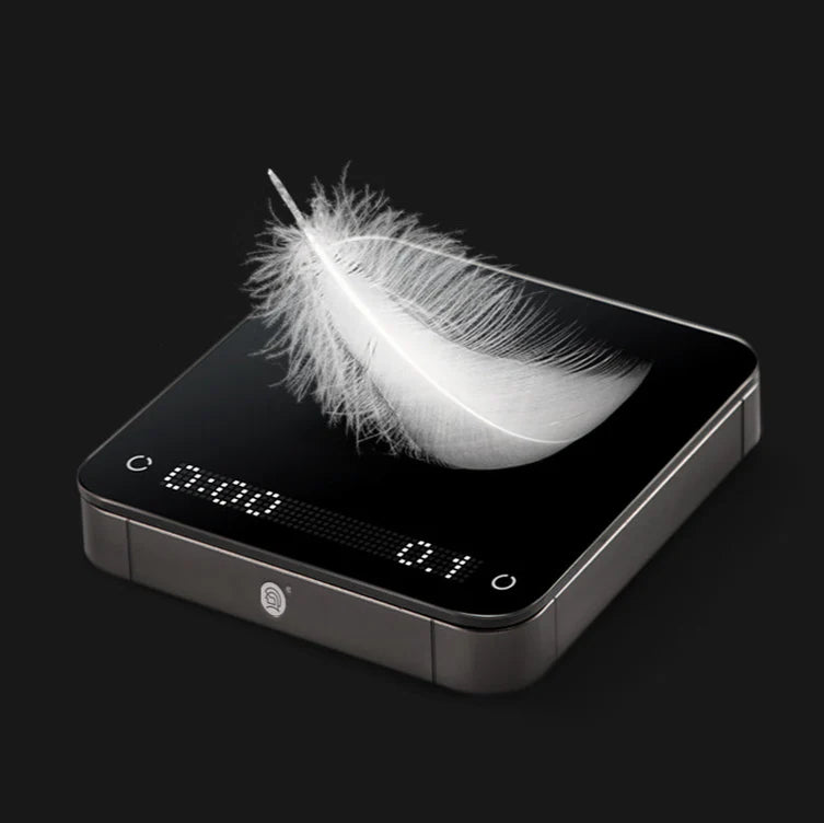 High-precision sensors (0.5g start | 0.1g accuracy) paired with a tempered glass surface to eliminate heat distortion errors.