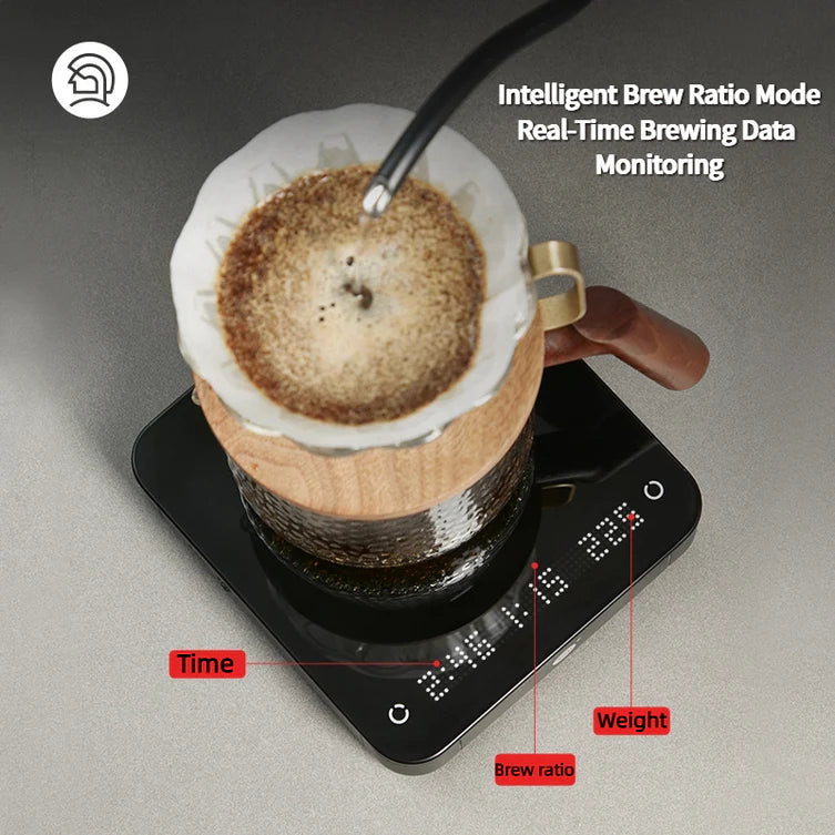 • Coffee-to-Water Ratio Mode: Auto-calculates 1:15 golden ratio