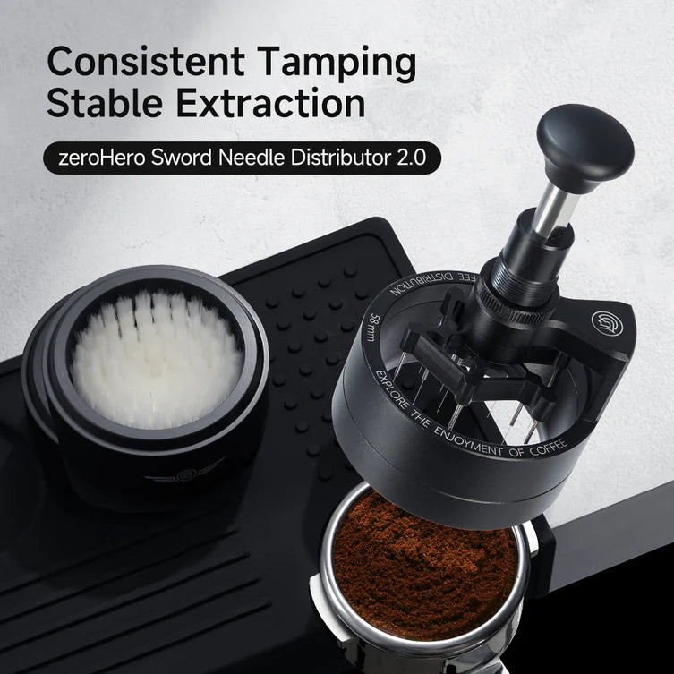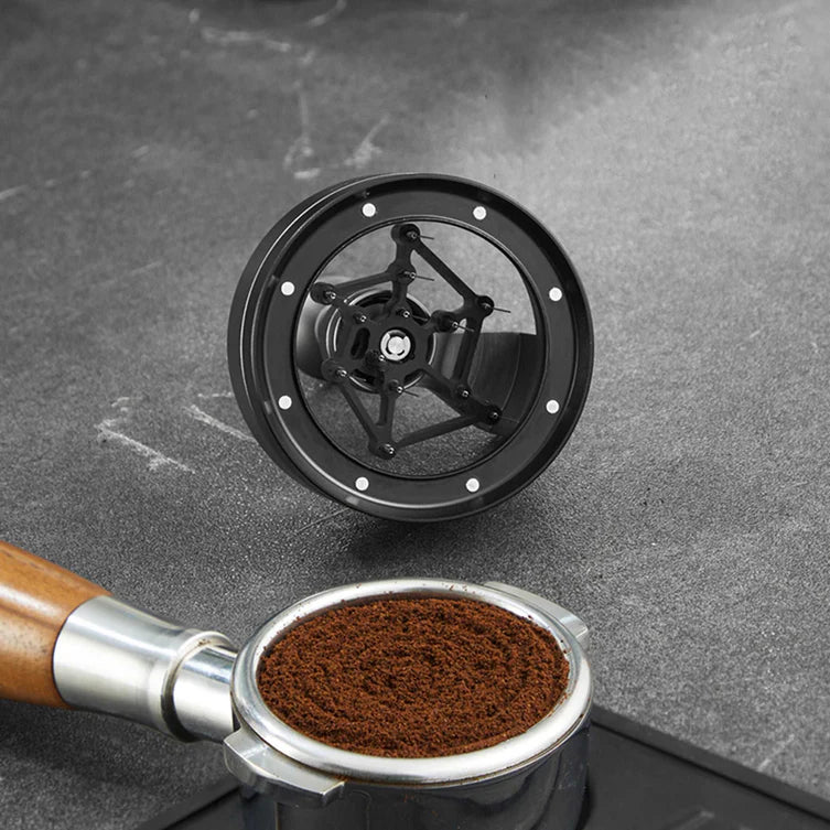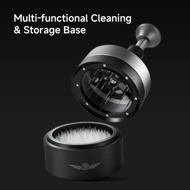 Magnetic base securely attaches the tool, allowing quick, even distribution with just two taps, breaking up clumps effortlessly and enhancing the espresso’s rich aroma and flavor. -